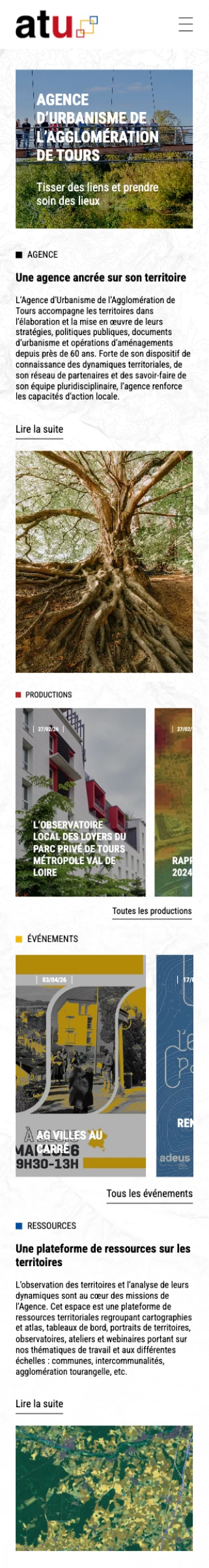 L’Agence d'Urbanisme de l'Agglomération de Tours (ATU37) accompagne les collectivités dans la compréhension, l'analyse et la planification de leur territoire, en produisant études, observatoires et outils d'aide à la décision.