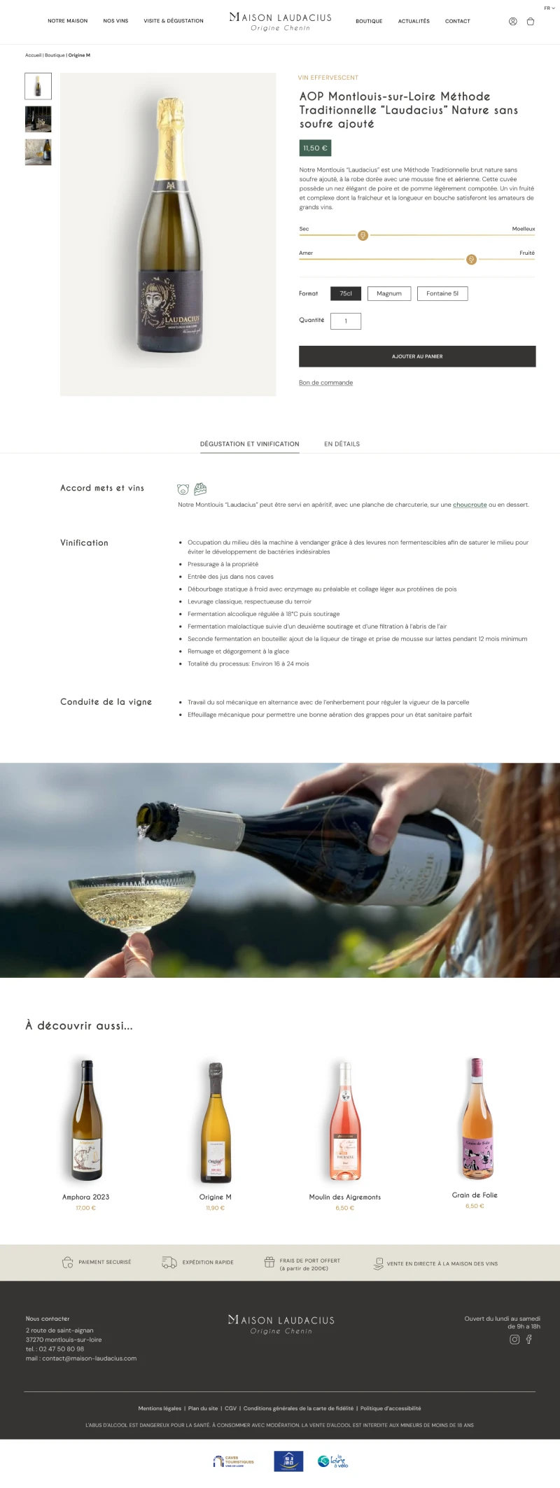 Acteur reconnu des vins de Loire, la Maison Laudacius est une cave coopérative implantée en Touraine. Elle regroupe des vignerons engagés autour d’un savoir-faire commun et d’une production de qualité, valorisant un terroir riche et une offre variée de cuvées.