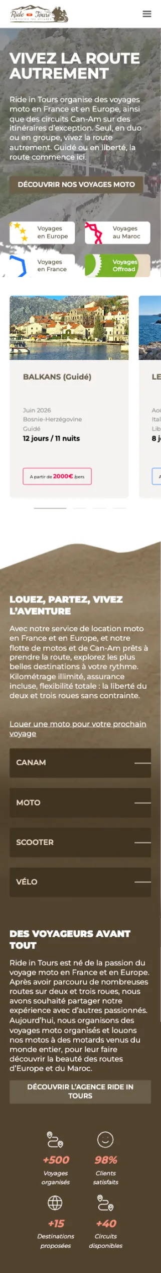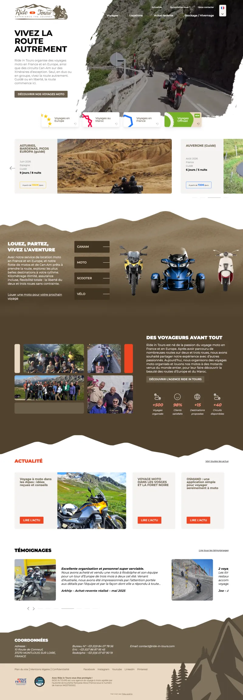 Ride in Tours organise des voyages moto en France et en Europe, ainsi que des circuits Can-Am sur des itinéraires d’exception.